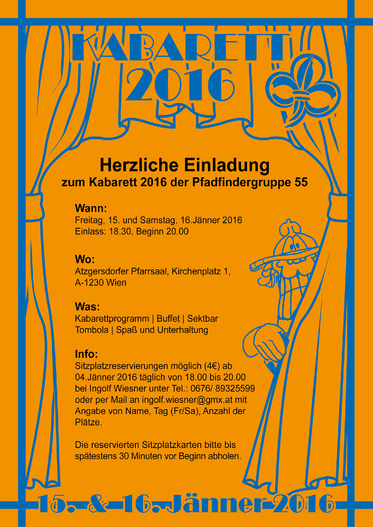Die reservierten Sitzplatzkarten bitte bis spätestens 30 Minuten vor Beginn abholen!